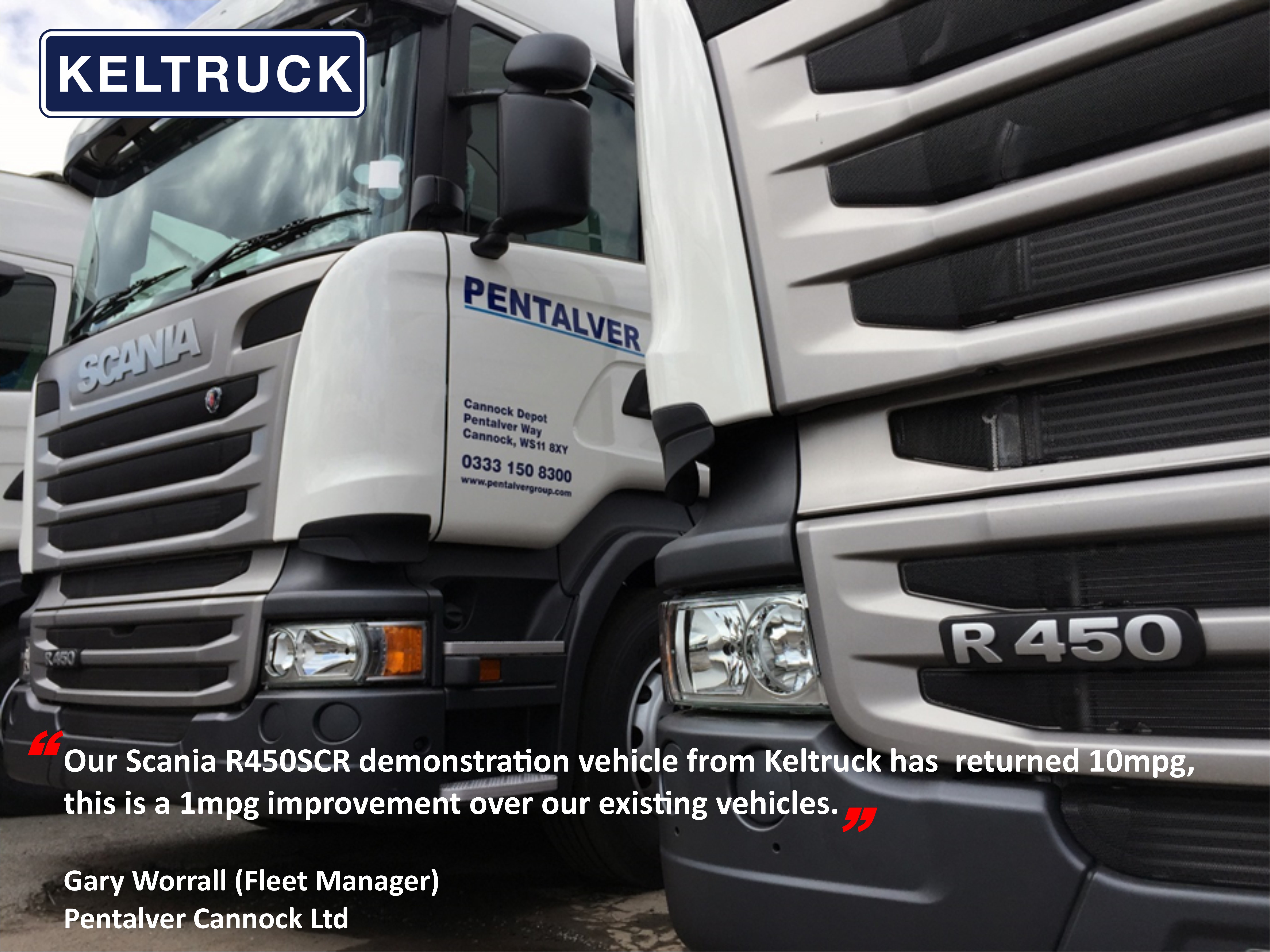 Our Scania R450SCR demonstration vehicle from Keltruck has returned 10mpg. This is a 1mpg improvement over our existing vehicles.