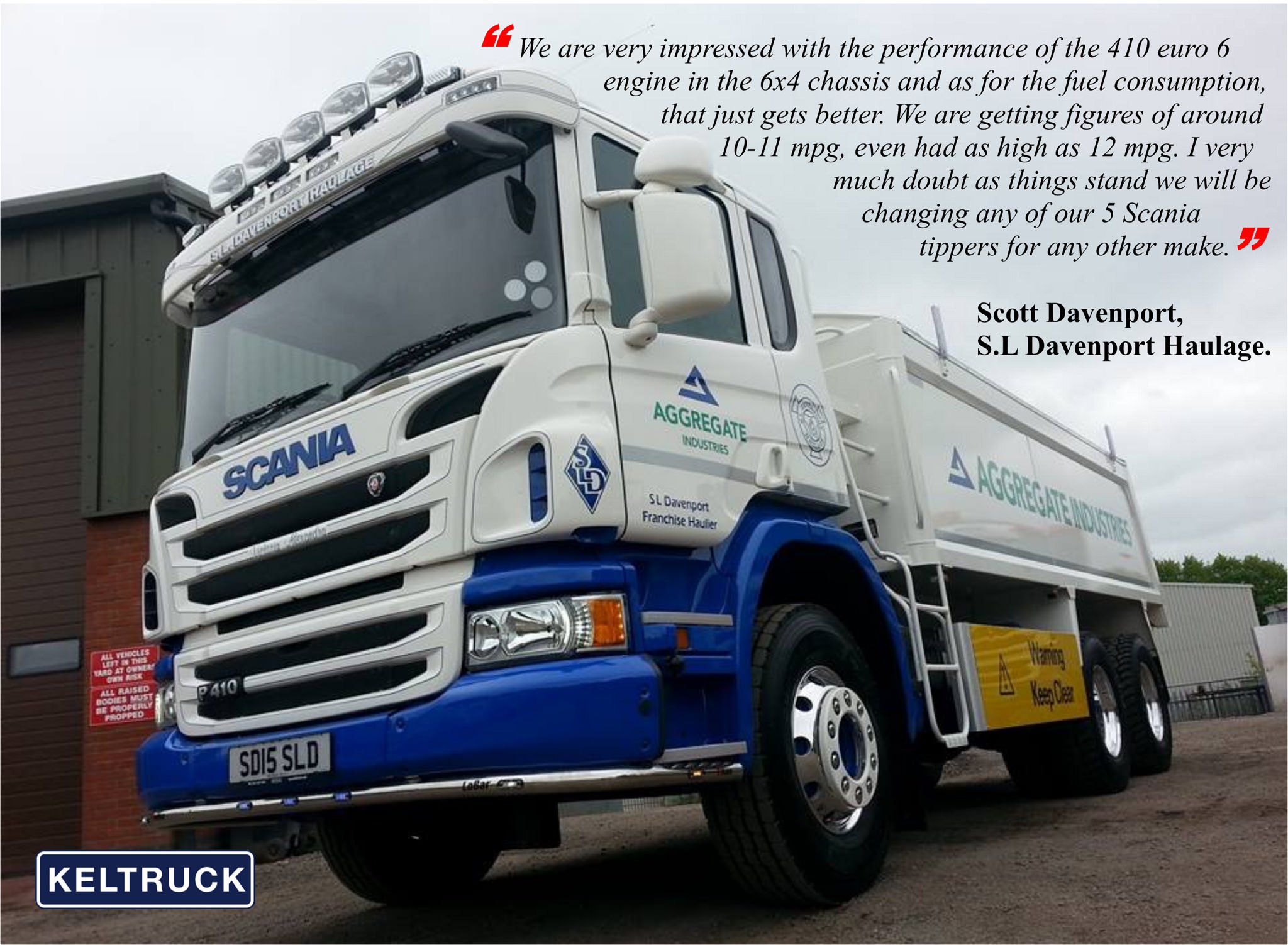 We enjoy dealing with Keltruck – Tony Biddlestone makes sure we get the right spec trucks and looks after us on the purchasing. The tippers look good with our livery and the drivers like them. All in all they fit in well with what we want to achieve.