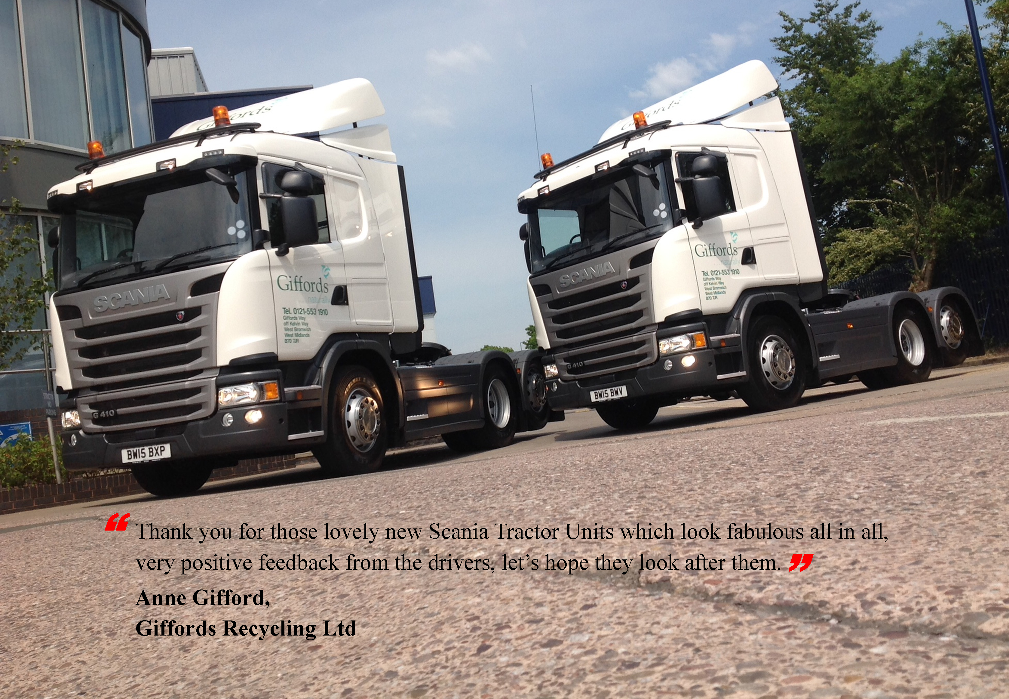 Thank you for these lovely new Scania tractor units which look fabulous. All-in-all very positive feedback from the drivers. Let’s hope they look after them!