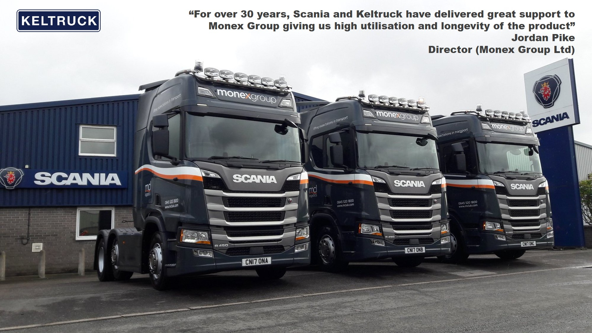 Scania has long been recognised for its low overall costs & reliability but, on the rare occasion we have encountered difficulties, Keltruck have dealt with them impeccably, understanding our needs & resulting in a mutually strong trading relationship for more than 30 years.