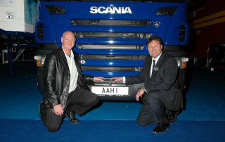 The first vehicle in the new fleet was handed over by Mike Kelly, Keltruck’s Sales Director, at the Commercial Vehicle Show at the Birmingham NEC recently. The vehicle has been registered AAH1 & put in the capable hands of Phil Weekes, winner of AAH’s Driver of the Year competition. The number plate, which has been sacrificed by AAH Group Managing Director, Steve Dunn, will be on Phil’s truck for the next 12 months.