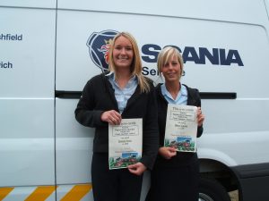 Becci Minshull & Dani Stokes of Keltruck Tamworth have received certificates from Eddie Stobart to say they are to have their names on the front of two new Scanias based out of Chesterfield.