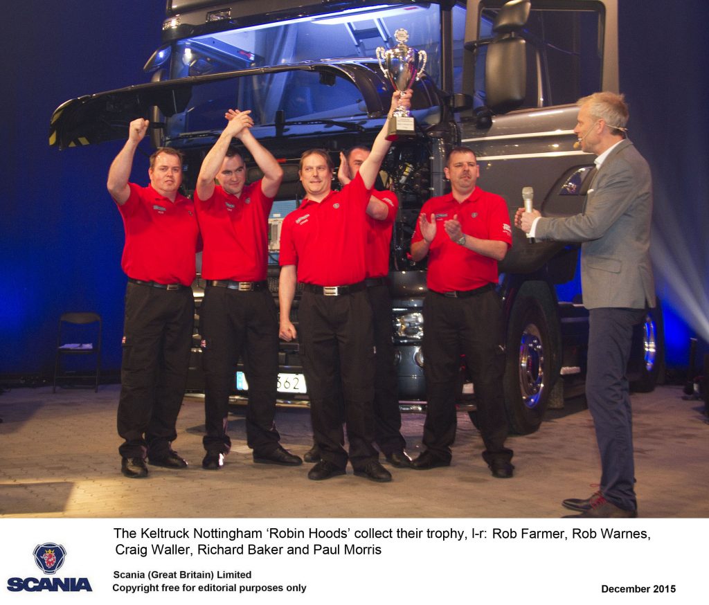 A team of four Technicians and a Parts Specialist have proved themselves to be the best in Europe by securing second place at this year’s Scania global Top Team competition. Pipped to the post in a nail-biting finale by New Zealand, the Keltruck Nottingham team (aka the Robin Hoods) and their depot are now 30,000 Euros richer as a result of their endeavours.
