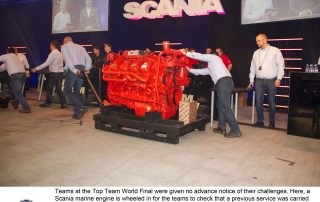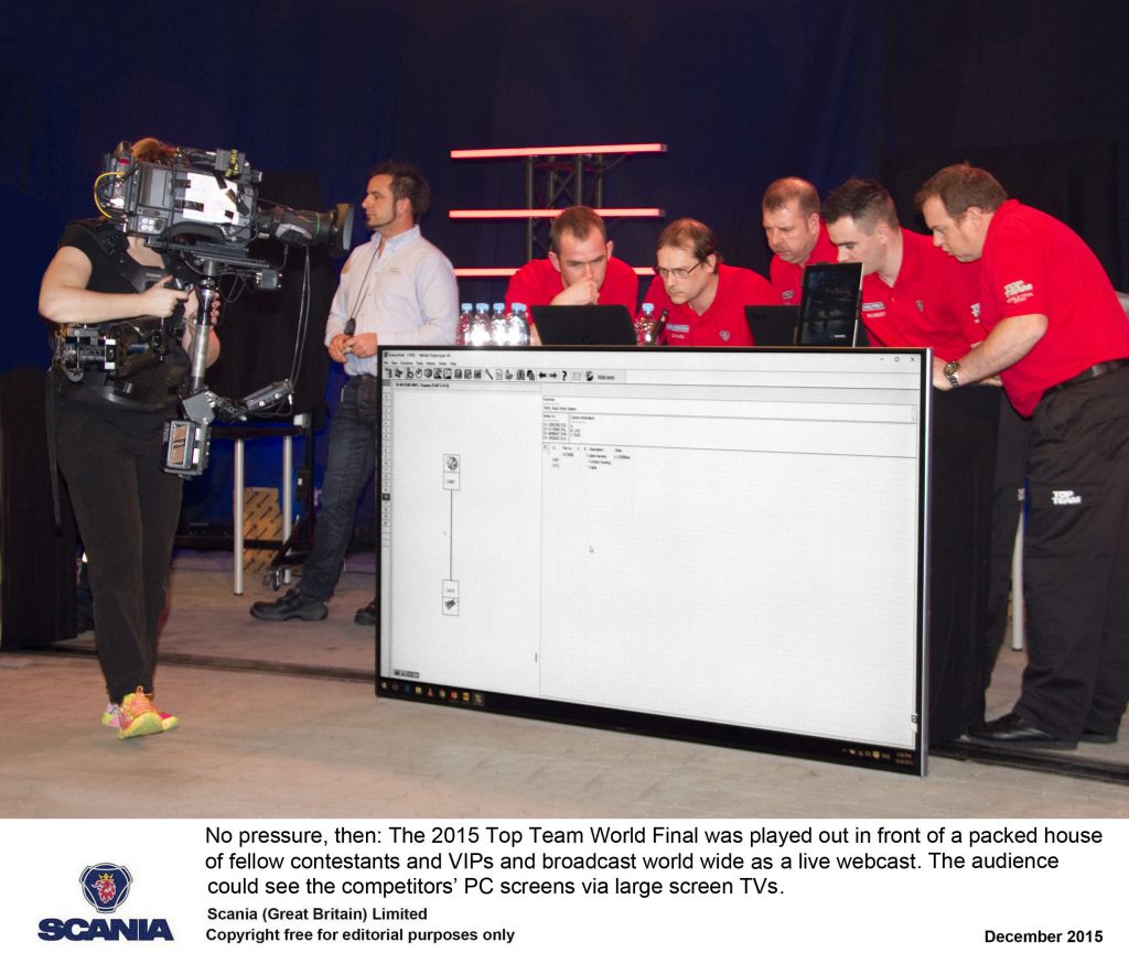 The grand finale was a high pressure affair. Staged in public before an audience of Top Team entrants, organisers and VIPs, the event was transmitted worldwide via a live webcast. In a tense series of exercises against the clock, first Australia then Brazil were eliminated, leaving the UK and New Zealand to battle it out for overall victory. The final trial, which involved the analysis and execution of a complex electrical task on a truck, saw New Zealand snatch victory by the most slender of margins.