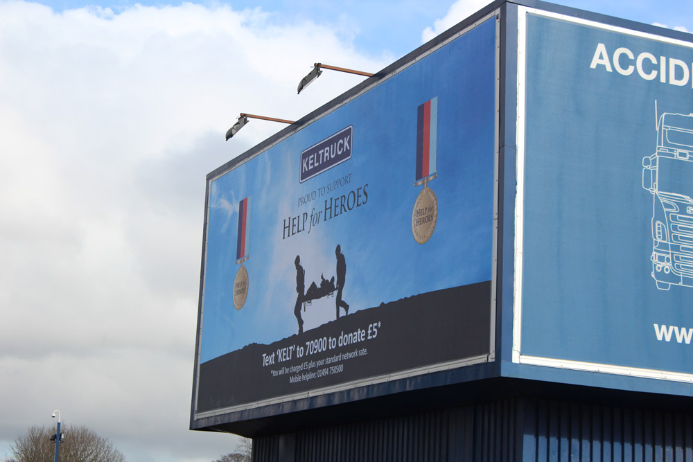 To help promote the campaign, an 11m by 4.5m banner has been erected at Keltruck’s water tower location, which overlooks the busy Junction 1 of the M5 motorway. The banner carries an SMS number that allows donations to be made by text message.