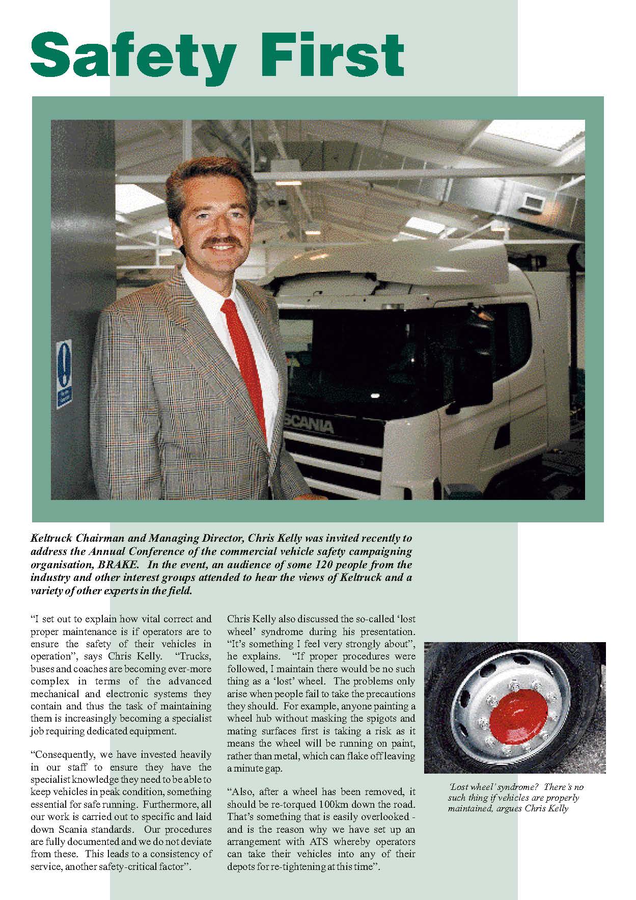 Keltruck Chairman and Managing Director, Chris Kelly was invited recently to address the Annual Conference of the commercial vehicle safety campaigning organisation, BRAKE. In the event, an audience of some 120 people from the industry and other interest groups attended to hear the views of Keltruck and a variety of other experts in the field.