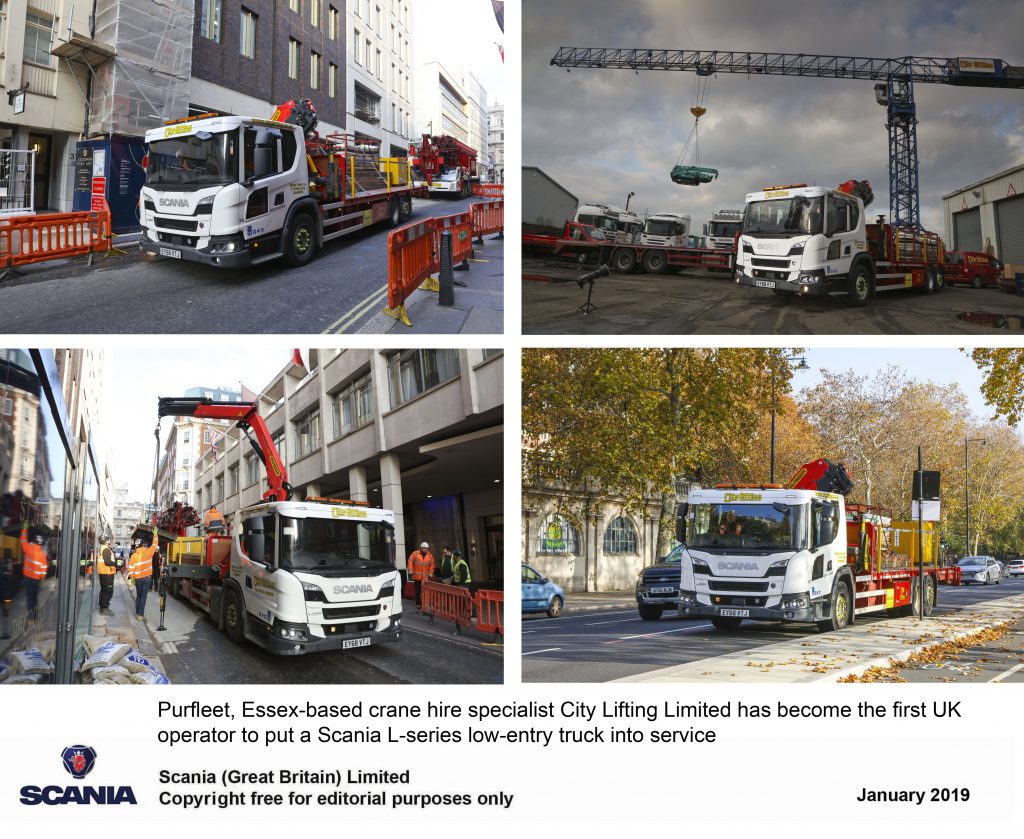 Purfleet, Essex-based crane hire specialist City Lifting Limited has become the first UK operator to put a Scania L-series low-entry truck into service. The vehicle, which has been supplied by Scania (Great Britain) Limited’s Purfleet branch, is a 26-tonnes gross vehicle weight L 280 6×2 rigid with a flatbed body and an onboard Palfinger PK19.001 SLD 5 18.5-tonne-metre loader crane.