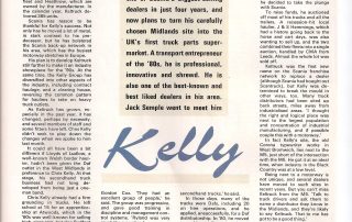 Some say Chris Kelly’s pace is too hot to handle. He has built one of Scania’s biggest-selling dealers in just four years, and now plans to turn his carefully chosen Midlands site into the UK’s first truck parts supermarket. A transport entrepreneur of the ’80s, he is professional, innovative and shrewd. He is also one of the best-known and best liked dealers in his area. Jack Semple went to meet him